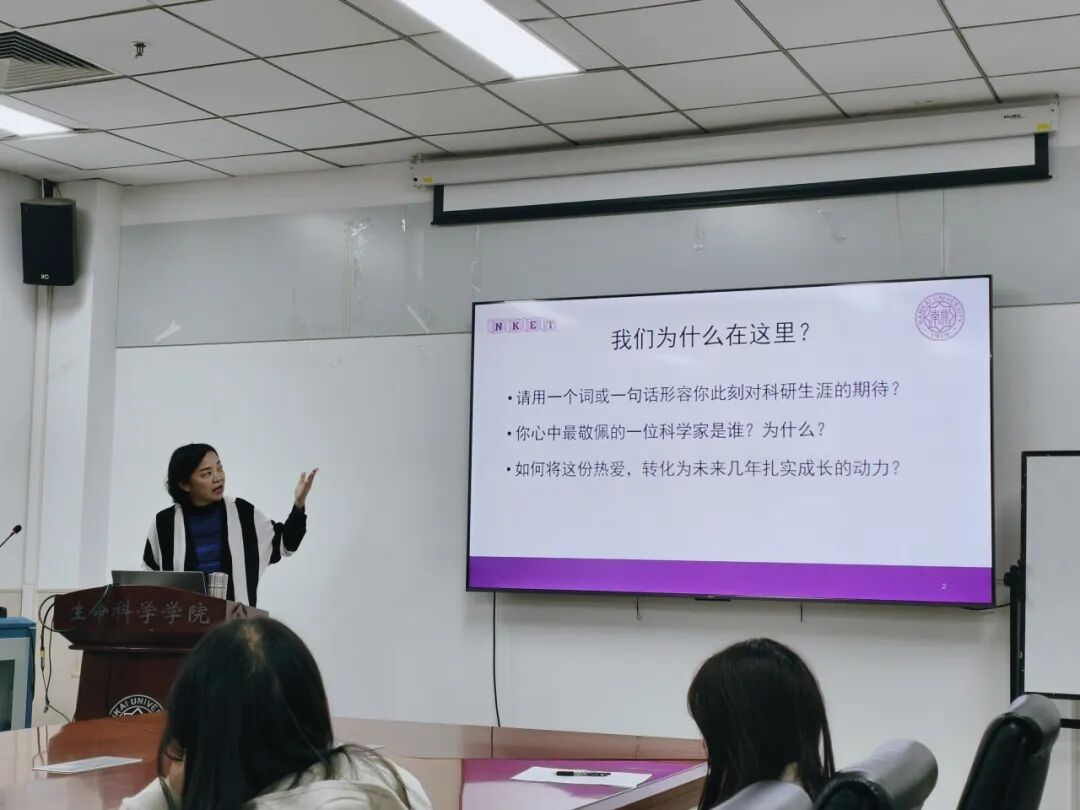 围绕“科研人的品格、能力与习惯”,周老师结合《礼记·大学》中的“格物致知”与《中庸》的“博学之,审问之,明辨之,笃行之”,阐释了传统文化与现代科研精神的契合。她特别强调,科研不仅是技术训练,更是一场精神修行,鼓励同学们将个人理想融入国家发展大局,胸怀“国之大者”。