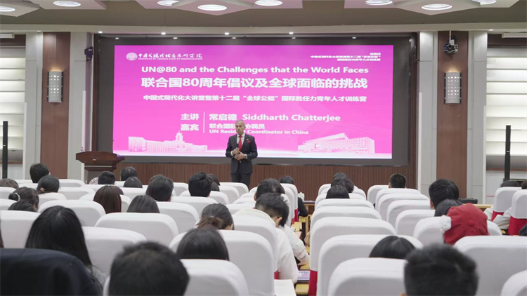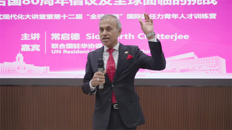 |     南开新闻网讯(通讯员 孙菲)10月19日,南开大学中国式现代化大讲堂第五期暨第十二届“全球公能”国际胜任力青年人才训练营第三讲活动,在八里台校区学生活动中心举办。联合国驻华协调员常启德(Siddharth Chatterjee)以“联合国80周年倡议及全球面临的挑战”为题发表主旨演讲。副校长白承铭出席活动并致辞。国际合作与交流处负责人主持活动。   白承铭对常启德的到来表示热烈欢迎。他指出本次活动恰逢联合国周年纪念,是开展国际交流、深化全球治理讨论的时间节点。他勉励广大南开青年学子,要发扬南开公能精神、拓展国际视野、发扬创新精神,主动将个人发展融入人类命运共同体构建的宏伟事业中。     主旨演讲环节,常启德结合其极具传奇色彩的个人经历与三十余年的国际组织工作生涯,深入剖析了当前世界面临的严峻挑战。他从冲突与不平等、环境与健康危机、人工智能带来的社会变革等多个维度,勾勒出人类共同面对的全球图景。他指出,全球仅有18%的国家有望实现可持续发展目标,反映出行动的紧迫性。   常启德高度评价了中国在减贫、可持续发展、能源转型与推动妇女发展等领域取得的卓越成就,他认为中国的实践为世界提供了宝贵经验。他强调,应对全球性挑战,必须坚持国际合作与多边主义,各国应求同存异,共同寻求解决方案。   在互动环节,常启德与师生热烈交流。他从童年收到第一双中国制造的鞋子谈起,分享了在华工作的深刻感受,他用“基于功绩、善于吸收、务实发展”概括了自己眼中的中国特质。   面对学生提出关于如何克服人生困境的问题,他分享了通过正念冥想管理压力的经验。他鼓励广大南开青年学子要明确自己希望为世界带来何种改变,进而主动学习、积累经验,为在未来国际舞台上贡献中国青年的智慧与力量做好准备。 |