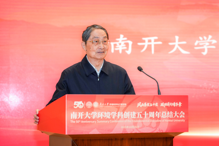 江桂斌深情回忆了与南开大学环境学科的深厚渊源。他表示,南开大学环境学科肩负着时代使命而生,并始终站在我国环境科学与技术研究的前列,为中国环境学科建设和本科教育早期发展作出重要贡献。回望发展历程,细数卓越成就,很高兴看到南开环境学科当前拥有了一批能力强、水平高、影响大的中青年学术带头人,期待南开大学环境学科继续立足国内外优势学科之列,与各高校和研究所携手并进,针对现存的环境问题提出创新研究成果,服务国家与民生。