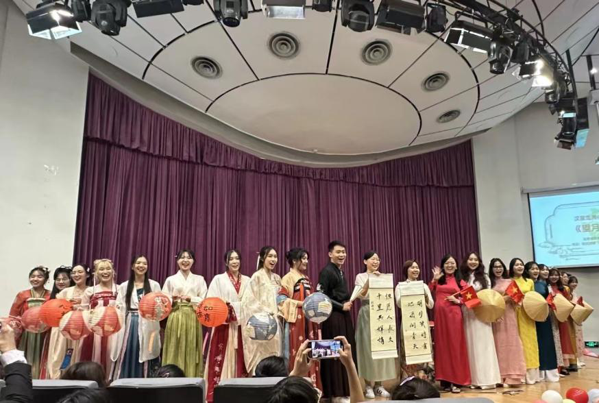 第十一届“汉语节”开幕式,立足中华传统节日中秋节,通过汉服走秀、书法表演、传统歌曲演艺等形式,带领中外学生深度体验中华传统文化。活动还设置了猜灯谜、汉字演变排序、诗词飞花令等互动环节,现场节日气氛浓厚。