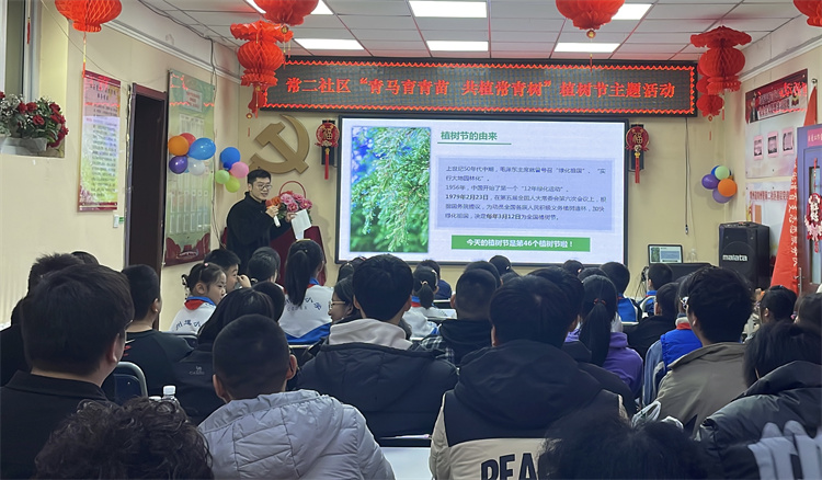 研究生第六党支部赴常州道小学开展“青马育青苗 共植常青树”科普宣讲,向30余名小学生、20余名社区党员介绍“植树节”的由来、植树造林的重要性等,希望大家能从小处养成保护环境、热爱自然的良好习惯。现场互动环节气氛热烈。随后,支部党员与常州道第二社区志愿者、小学生“大手牵小手”,一同给树苗松土、浇水和剪枝,用“党建红”引领“生态绿”。