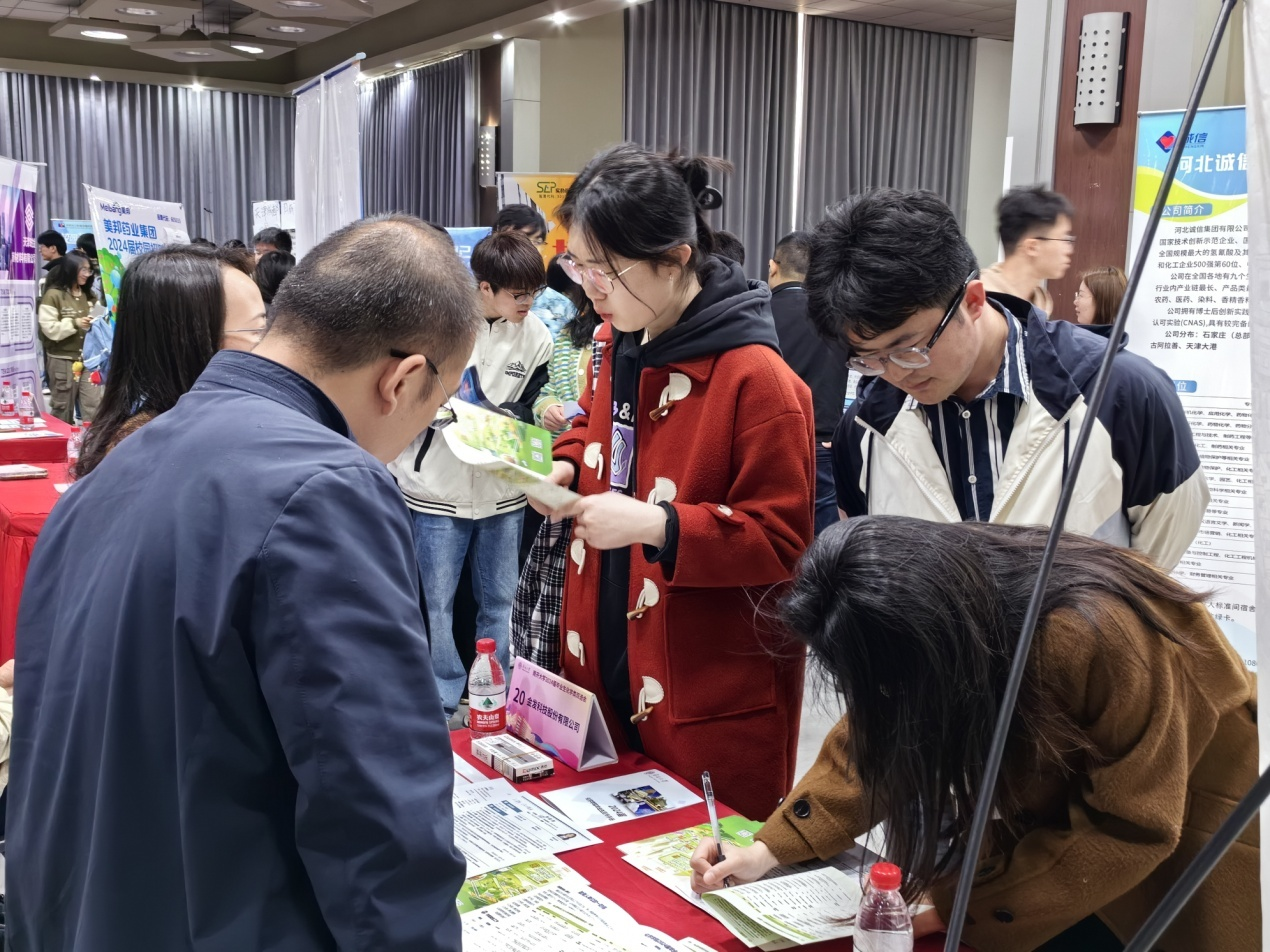 本次双选会共邀请到40家知名企业,涉及石油化工、生物医药、能源材料、化学新材料、杂志编辑等多个领域,为2024届毕业生提供就业岗位700余个,吸引了化学学院、生命科学学院等众多毕业生到场参加。活动现场,毕业生参与热情高涨,纷纷投递简历,积极介绍自己的专业优势和岗位期待,同时就工作内容、岗位职责、发展前景、薪资待遇等与用人单位咨询交流。