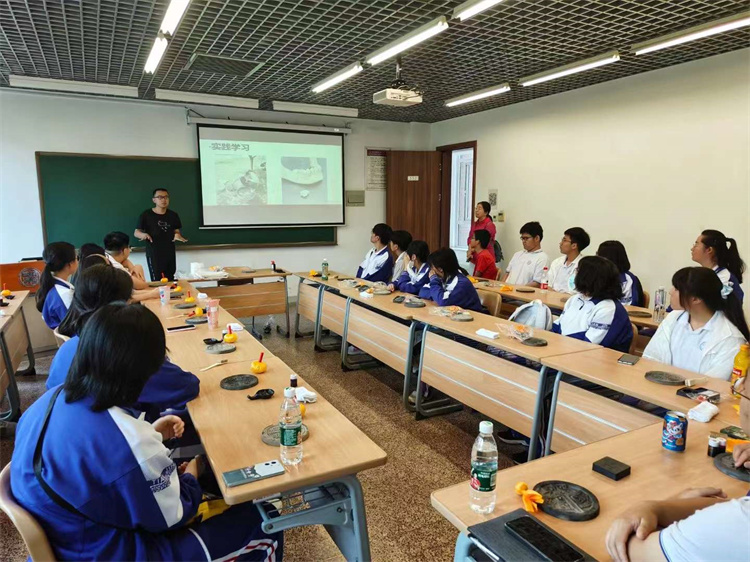 探寻文博实验,感悟印拓文明。历史学院文博考古市级实验教学示范中心面向全校师生开放,并为前来参观的上百名师生提供了2场绘声绘色的义务讲解。文博考古市级实验教学示范中心马娇老师系统介绍了传统考古与科技考古,深刻呈现了考古工作在深化中华文明探源工程中的重要意义。此外,本次活动还面向大中学生开放了精彩纷呈的手工拓印活动。天津市第七中学师生三十余人参与其中,通过近距离观察文博工作的实际流程,中学生们不仅体会到了非遗传拓乐趣和考古学的魅力,更将守护和传承优秀民族文化的精神根植于心。