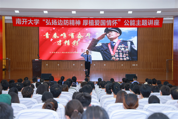 南开新闻网讯(通讯员 苏比伊努尔 范志远)为进一步增强师生的爱国主义情怀,青春奋斗,挺膺担当。5月23日下午,商学院举办“弘扬边防精神 厚植爱国情怀”主题讲座。新疆出入境边防检查总站11名民警代表与师生代表200余人共同参与了此次活动。