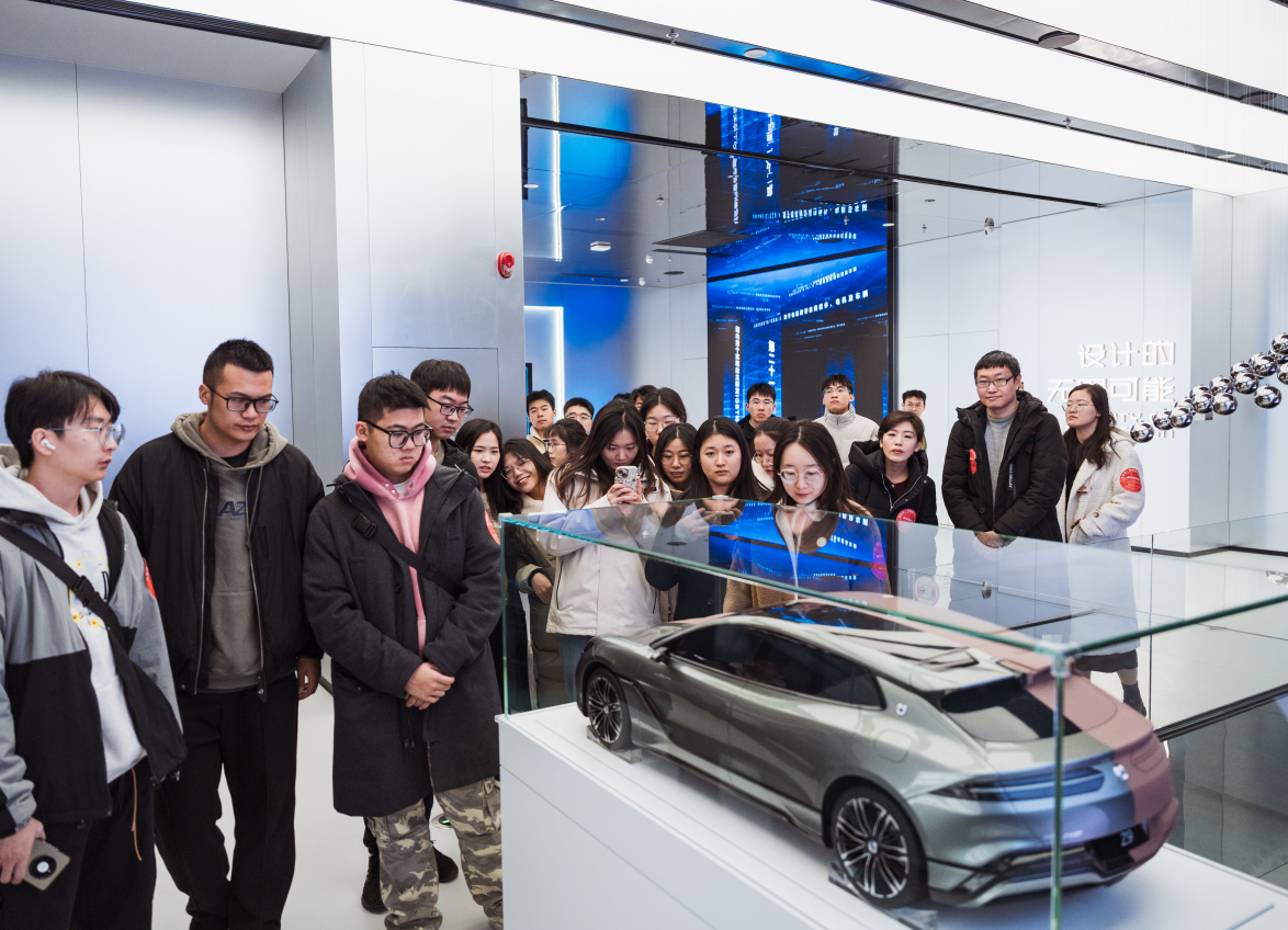 参观过程中,师生们借助实物与影像资料,深入了解了比亚迪的辉煌发展历程,见证了比亚迪从电池制造企业到全球新能源汽车领军者的跨越式发展,并通过技术人员深入浅出的讲解,了解了e平台3.0、DM混动系统、刀片电池和DiLink智能网联系统等核心技术,深刻领悟到“技术为王、创新为本”的理念以及比亚迪坚守的工匠精神。此外,通过虚拟现实技术,师生们亲身体验了车联网与自动驾驶的前沿成果,体验了智能化与便捷性的完美融合。