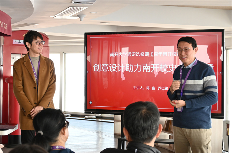 《百年南开校史文化》主讲教师、南开大学校史研究室主任陈鑫,课堂点评教师、南开大学资产公司企业形象推广部经理乔仁铭共同授课。