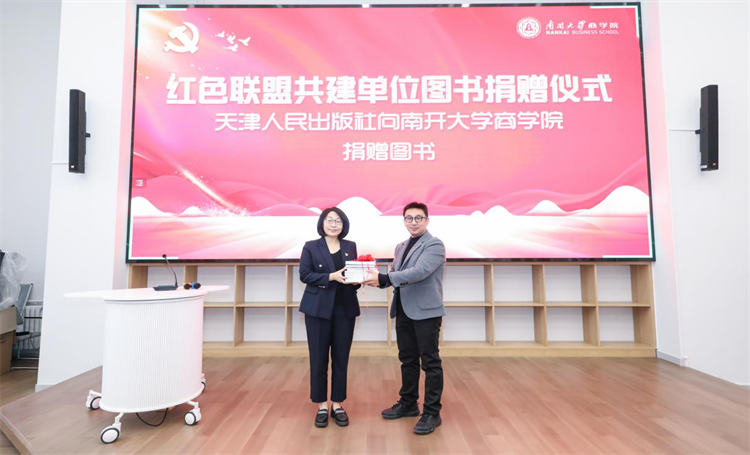 天津人民出版社党总支委员、副社长沈海涛代表天津人民出版社出席图书捐赠仪式,向南开大学商学院捐赠百册图书,不仅为学院师生提供丰富的知识资源,更是对商学院在学术研究、人才培养等方面工作的有力支持。