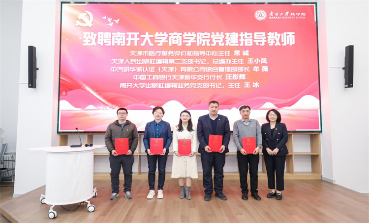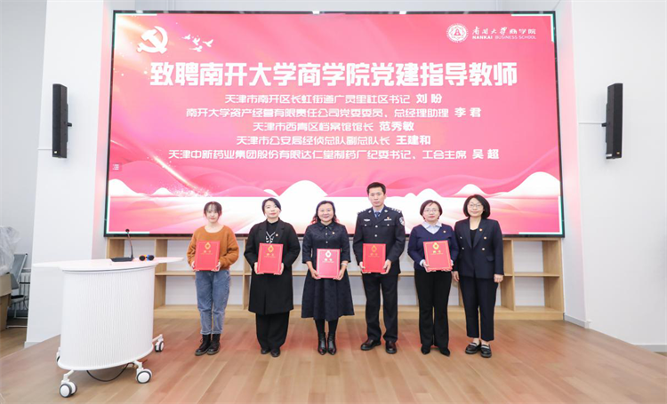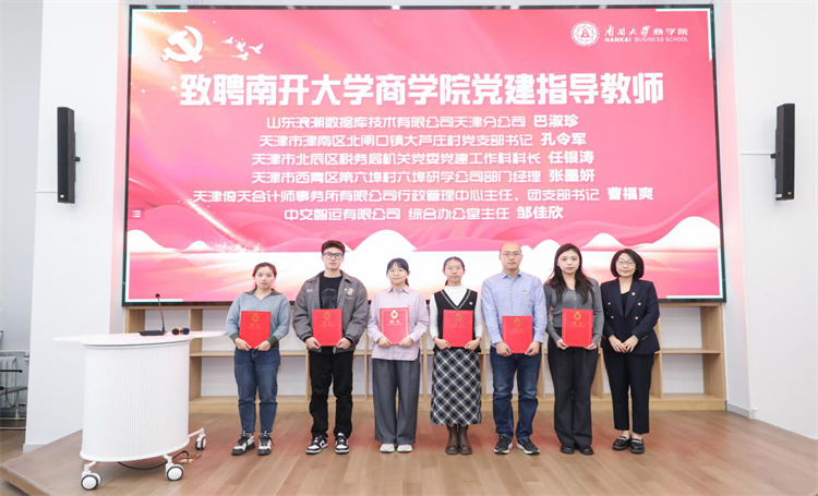 为进一步推动党建工作创新,南开大学商学院面向共建单位致聘党建指导教师。王坚书记为来自党政机关、事业团体、企业单位等多领域的杰出代表颁发聘书。