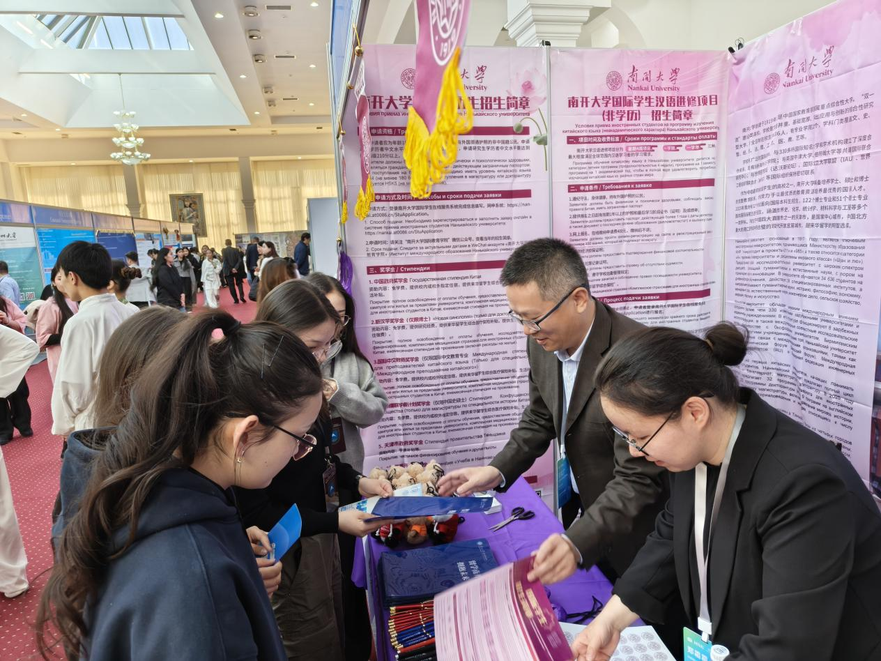 南开新闻网讯(通讯员 郑霜霜)为积极响应国家“一带一路”合作倡议,进一步拓展来华留学优秀生源,打造“留学南开”品牌,2025年4月19日至28日,南开大学国际教育学院副院长王红厂、招生管理办公室郑霜霜组团赴吉尔吉斯斯坦、乌兹别克斯坦、哈萨克斯坦参加由汉考国际主办的2025年HSK留学中国与就业展及交流活动。