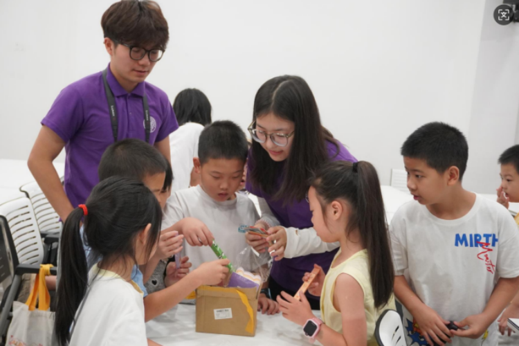 实践队在专业教师王睿粲的指导下,依托当地暑假公益托管营进行了五天的“七彩课堂”支教活动,自主设计并开展了医学科普、古诗文化、科学实验、趣味英语等20余堂特色课程,让科学知识与健康理念在孩子们心中生根发芽,为乡村儿童提供了科学、规范、有温度的教育服务。