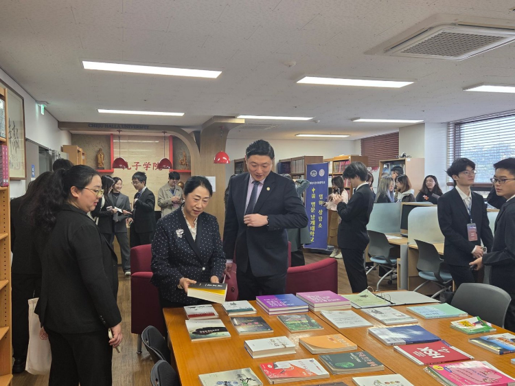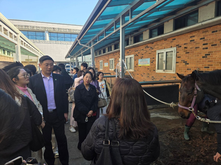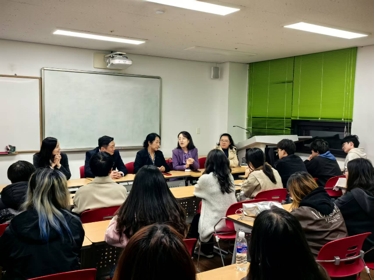 在济州汉拿大学访学期间,师生深入调研了该校旅游与酒店管理专业建设,参观了其酒店餐饮、马事、水上运动项目等特色专业实验室及数字艺术博物馆项目。济州汉拿大学国际交流副处长、旅游管理系主任、济州国际自由城市中心副主任李補连为访学师生详细介绍了学校发展概况,旅游学科教育理念、学生培养方式和就业情况等。在济州汉拿孔子学院院长王杉的陪同下,师生参观了孔子学院文化展厅和图书馆。王杉向师生们介绍了孔子学院举办的历次中国优秀文化展,展示了各类经典的国际中文教学教材,并与师生就中华优秀传统文化在韩国的传播和中文教学情况进行交流。