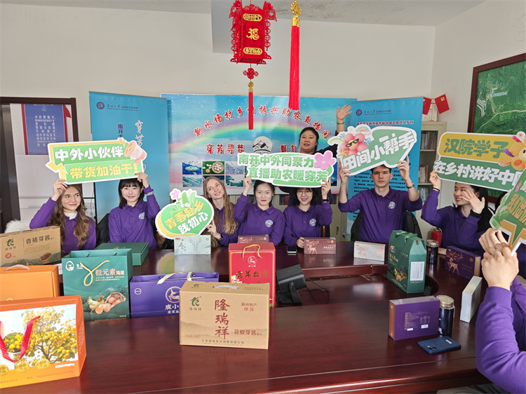 下午,在新水场村党群服务中心,一场别开生面的“国际直播助农”活动热烈开展。中外学生用汉语生动推介穿芳峪镇的金如意山楂、香椿芽酱、富硒鸡蛋等特色农产品。他们不仅在实践中锻炼了语言应用能力,更以实实在在的行动为乡村产业发展注入了新的动能。