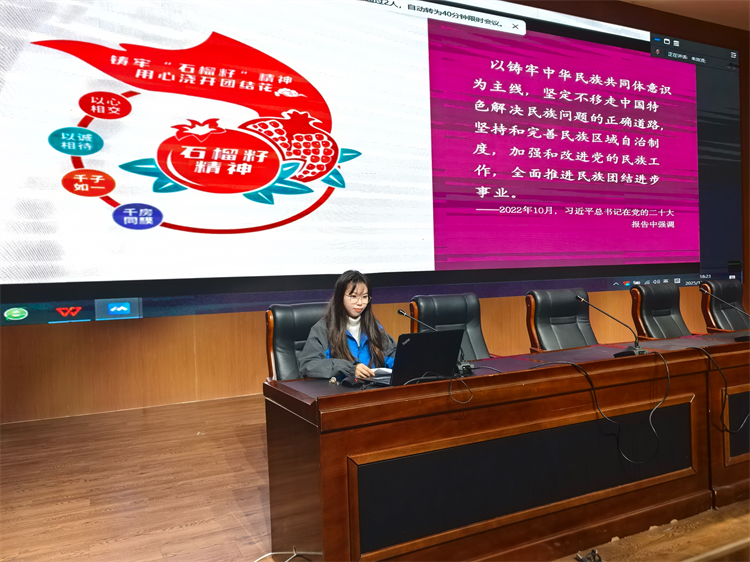 南开大学研支团成员崔雅雅以民族团结为核心,从地理、历史、文化、法律四个维度展开宣讲。她介绍了我国56个民族的分布特点与人口概况,梳理了中华文明的历史渊源,解读了国旗所蕴含的民族团结寓意及《宪法》中各民族一律平等的明确规定,明确民族团结并非抽象口号,而是体现在日常的尊重、理解与包容中,鼓励同学们主动了解不同民族文化,争做民族团结的践行者与传播者。