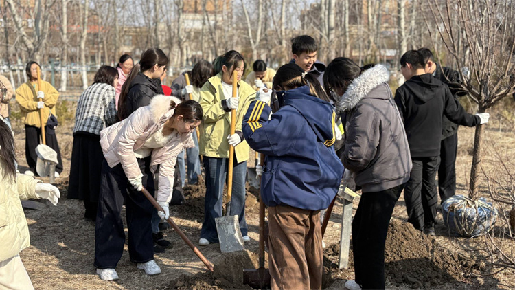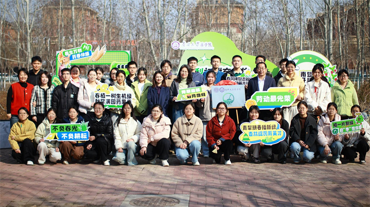 随后,植树节体验活动正式开启,师生们迅速投入到植树劳动中,分工协作、配合默契,挥锹铲土、扶正树苗、填土压实、浇水定根,每一个环节都认真细致、有条不紊。春日的药用植物园里,大家忙碌的身影构成一道亮丽的风景线,一棵棵新苗在沃土中扎根,为校园增添了盎然生机,也让绿色发展的种子在每一位参与者心中生根发芽。