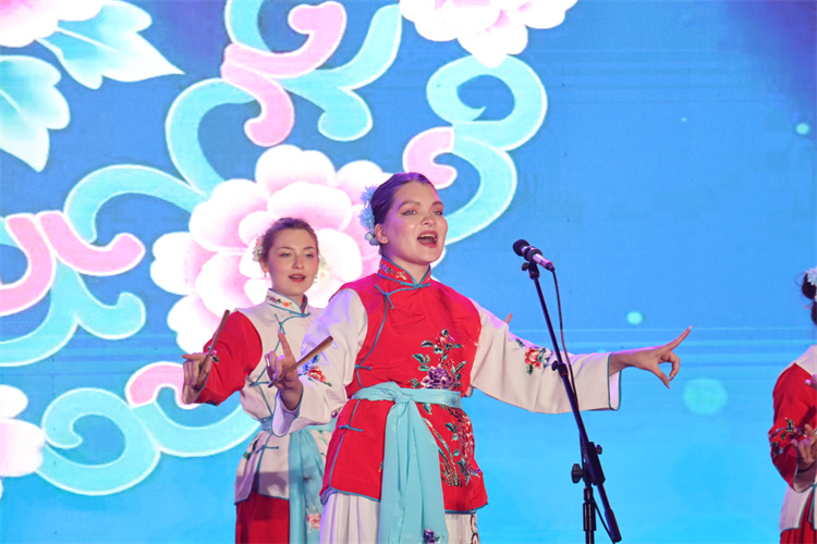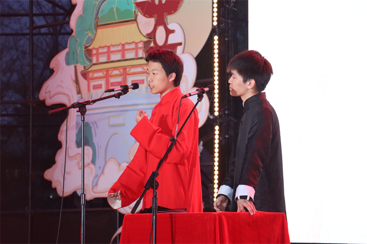 本场演出持续近两小时,11 个节目轮番登场,涵盖乐队演奏、相声、歌曲、舞蹈、京剧、汉服走秀等多种艺术形式。演出阵容汇聚来自南开大学国际教育学院和汉语言文化学院、旅游与服务学院、学生合唱团、爱乐音乐协会、国乐相声协会等多个学生艺术团体的南开学子。既有中国学生,也有来自 9 个不同国家的留学生,不同文化背景的青年在舞台上交流碰撞,尽显青春风采。