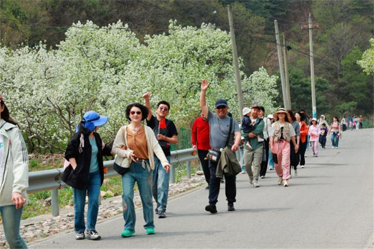 跟随着健步走大旗,参与者们沿着桑树庵村“四好农村路”示范段前行,全程约3.5公里。春日的桑树庵村,梨花似雪,千树琼英与青翠远山相映成趣,沿途风景如画,令人心旷神怡。参与者们或快步走,或慢跑,脸上洋溢着兴奋与喜悦的笑容。他们纷纷表示,这次健步走活动不仅锻炼了身体,更让他们深刻感受到了乡村振兴的成果。