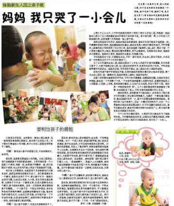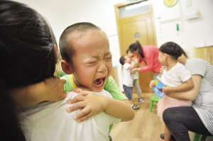 子轩妈妈阮女士说,只要她在身边,子轩一般不会哭,对去幼儿园也不抵抗,只有在前一天和家长分开半个小时的时候哭了。