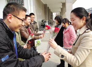 本报讯(记者刘晓艳摄影记者姜宝成)“再不疯狂我们就老了,再不行动你们就嫁了。”3月7日,这些充满浪漫爱意又颇具“工科范”的各种条幅在天津大学里挂起来。在“隔壁”南开大学,有创意的条幅也是让人“亮瞎了眼”。3月8日,是妇女节,3月7日在许多大学里则是“女生节”。