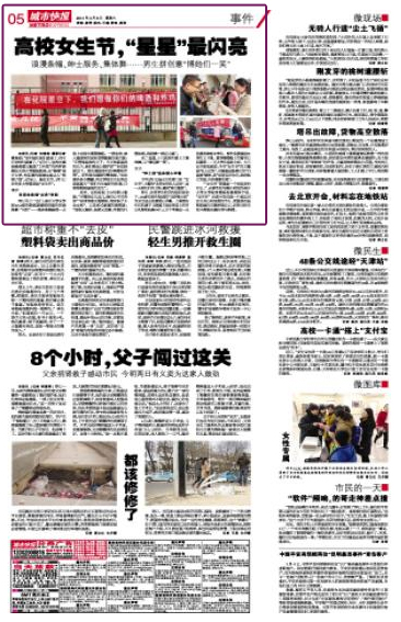 昨日,在各学生社团的组织发动下,100多位男生组成的“北洋绅士团”为女生送去免费爱心早餐,上课前女生们的桌子上摆满了男同学送上的节日礼物和祝福卡片。1万个苹果这一天免费发放给女学生,校车免费接送女学生上下课,教学楼黑板上写着节日祝福语……天大学生会副主席、大三女生张佳星说,今年“女生节”的主题是“私人定制”,内涵是宣扬真正的“白富美”精神,即“洁身自好为白,经济独立为富,内外兼修为美”。
