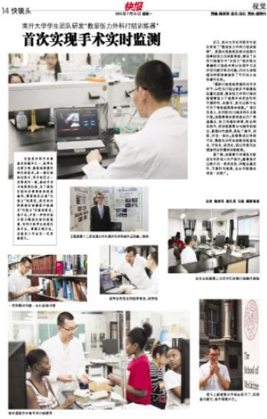 近日,南开大学医学院学生团队研发了“数显张力外科打结训练器”,是国内首款实现实时监测打结牵拉张力的训练系统,解决了以往打结教学中“无张力”技术难以掌握和打结技术难以自我学习及评估的教学难点问题,同时为该领域的科研探索提供了可行的方法和硬件支持。