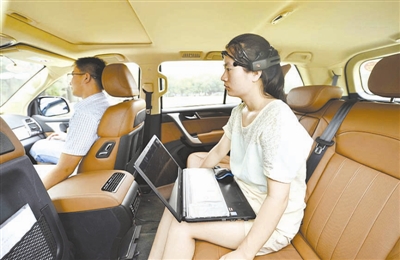 当日,南开大学计算机与控制工程学院段峰副教授的研究团队在南开大学进行了一场“脑控汽车”测试,测试员头戴装有16个采集点的脑电信号采集设备,通过脑电信号对一辆装有计算机处理系统、车载电控单元等装置的汽车“发号施令”,汽车能够执行启动、直线前进、直线倒车、刹车、车门上锁、解锁等规定指令。
