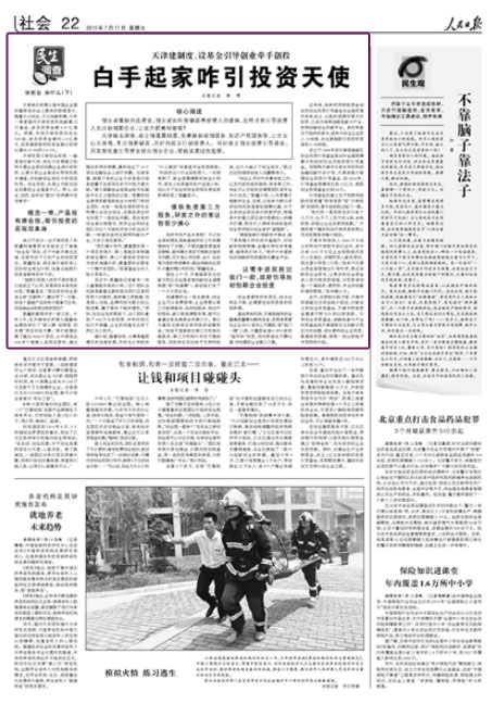 天津市财政投入3000万元设立的科创天使按市场化运作,其中已有2155万元在企业回购或风投介入后退出,并循环投入新的项目,现在累计投资173项。“政府不仅要从资金层面做出引导作用,更应该吸收社会资本,让更多的社会资金进入到天使投资领域,为投资者创造一个高效的、便利的、专业的创新环境和氛围。”张学锋认为。