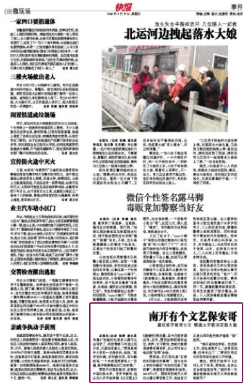 本报讯(记者 程婷 通讯员 马超)“电脑时代很多人都不太会写字了,我觉得练习书法比玩手机、打游戏有意义。”贾君是南开大学的一名保安员,他说,“练字的时候,有时候仿写,有时候拓写,一个字我通常要写上一百遍,练字能够陶冶自己的性情。”