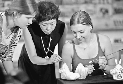 中秋佳节来临之际,中国各地校园洋溢着浓浓的节日气氛,学生们在老师的指导下参与月饼制作、放荷灯、剪纸等活动,感受传统中秋文化的魅力。图为南开大学留学生在中秋主题文化体验活动中绘制“兔爷”泥塑。