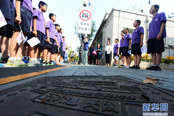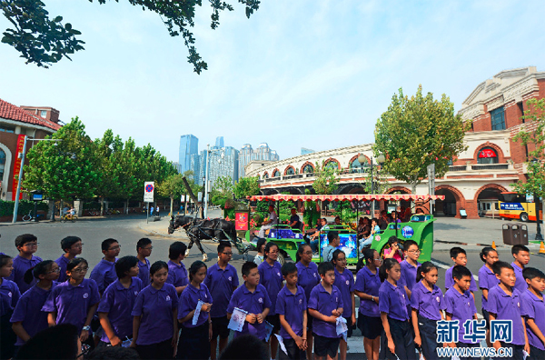 图为天津南开日新国际学校七年级的学生正用中英双语为同学们介绍五大道的历史和文化。新华网发(史淞予 摄)