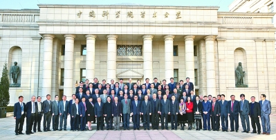 11月28日,新当选中科院院士在中科院学术会堂广场合影留念。新华社发