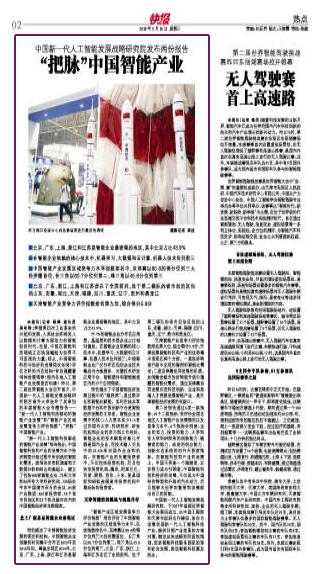 本报讯(记者 程婷 通讯员 吴军辉)伴随第四次工业革命的兴起和发展,人类社会即将进入以数据和计算为驱动力的智能经济时代。当前,中国在智能科技领域正在快速崛起为世界不可忽视的力量。那么,中国智能科技与经济的发展现状如何?存在怎样的内在结构?背后蕴藏着何种发展规律?国内各地人工智能产业发展是否均衡?昨日,第二届世界智能大会召开前夕,中国新一代人工智能发展战略研究院在南开大学发布了其承担的本届智能大会专题报告——“新一代人工智能科技驱动的智能产业发展”和“智能产业区域发展竞争力评价指数”,“把脉”中国智能产业。
