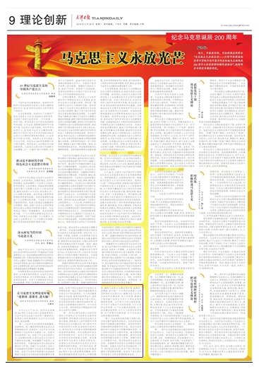 第二,作为从事马克思主义研究的理论工作者和从事马克思主义教学的高校教师,我们要深入研究马克思主义基本原理,特别是从习近平新时代中国特色社会主义实践出发,深入研究当代中国马克思主义和21世纪的马克思主义,将马克思主义的基本原理和最新研究成果带进课堂,用生动鲜活的语言将其传授给学生。南开大学马克思主义学院是全国首批重点马院,肩负着培养青年马克思主义者的光荣任务。在课堂上向学生讲好马克思主义是马院教师的神圣使命。对于我们来说,贯彻习近平总书记在纪念马克思诞辰200周年大会上的重要讲话精神,首先就是要加强和改进马克思主义理论教育,确保马克思主义理论更好地“进教材、进课堂、进头脑”。今天我们在课堂上应该怎样讲好马克思主义?就像习近平总书记在讲话中所要求的:学习马克思,就要学习和实践马克思主义关于人类社会发展规律的思想、关于坚守人民立场的思想、关于生产力和生产关系的思想、关于人民民主的思想、关于文化建设的思想、关于社会建设的思想、关于人与自然关系的思想、关于世界历史的思想、关于马克思主义政党建设的思想。