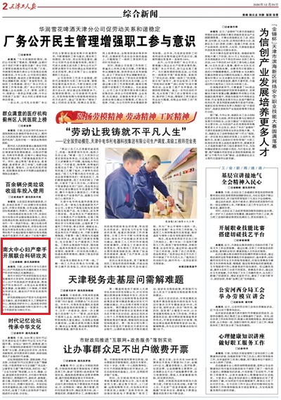 天津工人报:南大中心妇产牵手开展联合科研攻关