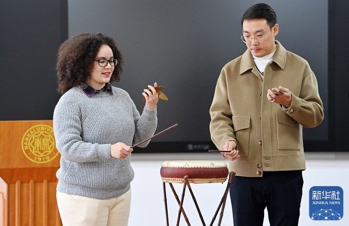 2019年,已是南开大学留学生的艾茉莉在参加学校组织的文化体验活动中,首次接触到了国家级非遗项目“京东大鼓”并为之着迷。她拜师“京东大鼓”艺人王文磊,从“京东大鼓”的学习中体会到了中国传统文化的魅力,也跟着师傅参加了不少演出。艾茉莉希望日后能成为一名中巴之间文化交流的使者。