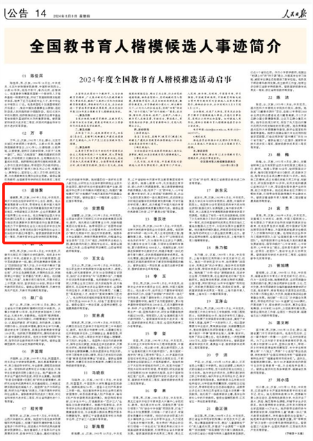 公示期间,欢迎广大师生、家长及社会各界了解学习楷模候选人事迹,并进行实事求是、客观公正的评议和监督。如对候选人有异议,请向全国教书育人楷模推选委员会办公室反映。