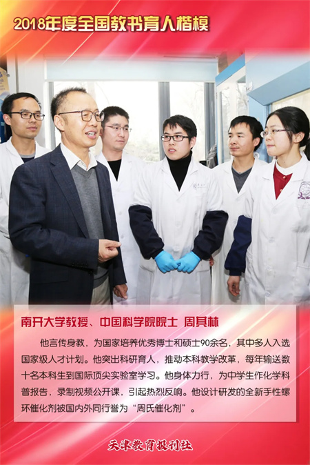 从2010年至今,全国教书育人楷模推选活动已进行十五届。本市共有七位教师获此殊荣,分别是天津市电子计算机职业中等专业学校教师徐英杰,河东区第一幼儿园园长高歌今,天津大学教授、中国工程院院士王静康,南开大学教授、中国科学院院士周其林,天津中医药大学名誉校长、中国工程院院士张伯礼,滨海新区塘沽第一职业中等专业学校教师翟津,南开大学政治经济学研究中心主任、教授逄锦聚。他们立德树人、教书育人、甘为人梯、爱岗敬业、无私奉献,彰显了新时代人民教师的高尚道德情操和人格魅力。今天,我们一起领略他们的风采——