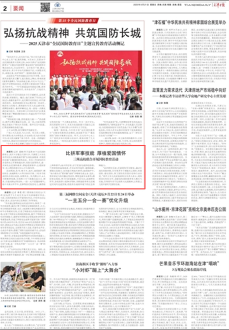 本报讯(记者 姜凝)昨天是第25个全民国防教育日,南开大学联合天津大学、天津理工大学在南开区民兵训练基地开展“弘扬抗战精神 共筑国防长城”主题国防教育活动。来自三所高校的百余名师生以军事技能比拼、经验交流等形式,进一步深化全民国防教育、厚植爱国情怀,让爱国崇军、关心国防的意识在心中生根发芽。