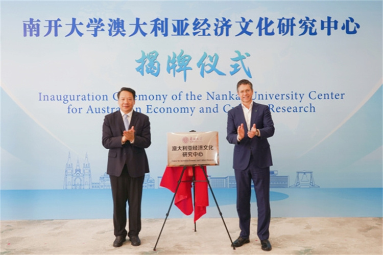 活动上,陈雨露与尼古拉斯·里斯共同为“南开大学澳大利亚经济文化研究中心揭牌”。南开大学副校长方勇纯主持揭牌仪式。