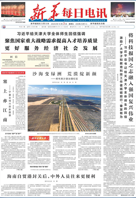 新华社北京10月2日电 题:将科技报国之志融入强国复兴伟业——习近平总书记给天津大学全体师生的回信激励广大学子和教育科技工作者砥砺前行、奋发有为