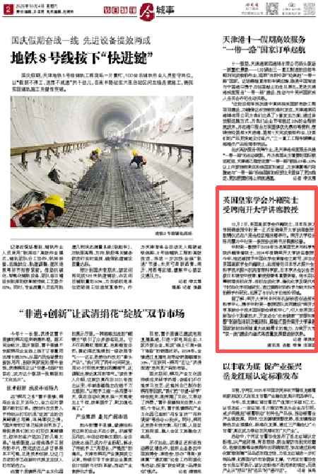 10月2日,英国皇家学会外籍院士、日本东京大学特聘教授中村荣一正式受聘南开大学讲席教授。致聘仪式在八里台校区海冰楼举行。南开大学校长陈雨露为中村荣一教授致送聘书并佩戴校徽。