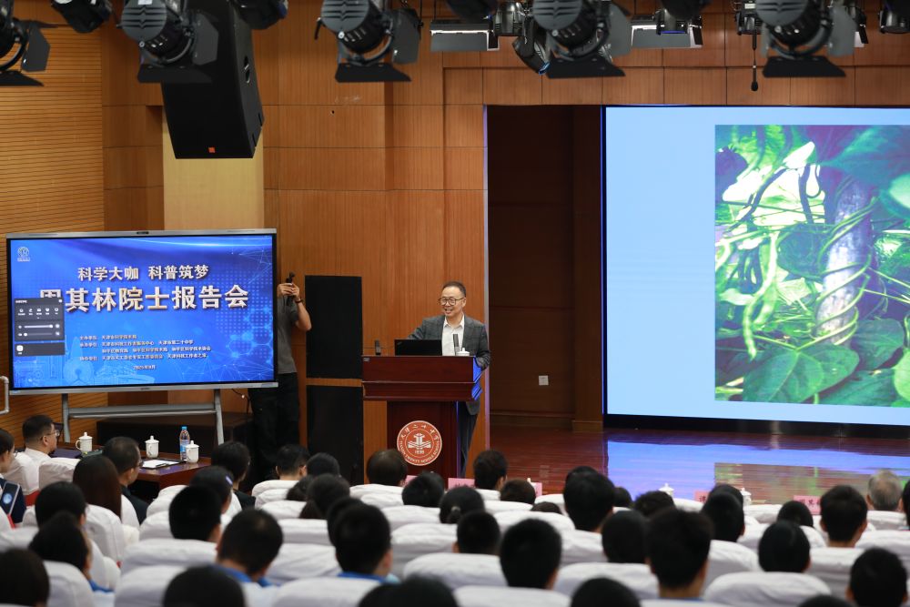 周其林院士以《手性物质科学》为题,深入浅出地为师生讲解了手性分子在自然与生活中的奇妙现象,从手性的起源、手性科学技术的发展、手性化合物的种类等角度分享了手性分子在生活中的应用。同学们听得津津有味,现场不时响起阵阵掌声。