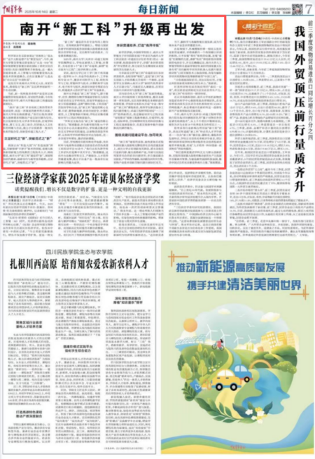 2025年,南开大学(天津市)卓越工程师学院揭牌成立。学校还新增人工智能、计算机、光电信息3个“新工科”卓越班,新增“低空技术与工程”二级学科博士点等。
