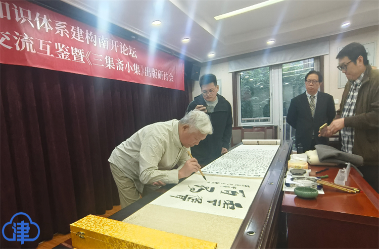 与会代表纷纷在长卷上挥毫泼墨,以题词、赋诗、作画等形式以祝贺《三集斋小集》的出版和研讨会的圆满举办。