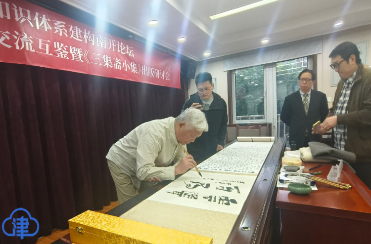 与会代表纷纷在长卷上挥毫泼墨,以题词、赋诗、作画等形式以祝贺《三集斋小集》的出版和研讨会的圆满举办。