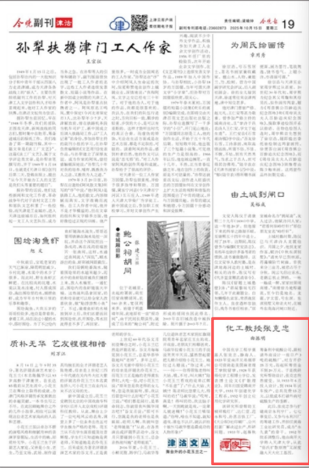 此后,张克忠参与扩建南京永利宁厂。七七事变后,又参与永利川厂的筹建工作,并担任黄海工业社研究员,成为“永久黄”的骨干。1952年院系调整后,他由南开大学转入天津大学,从此“张氏扩散原理”又深度融入天大化工基因。