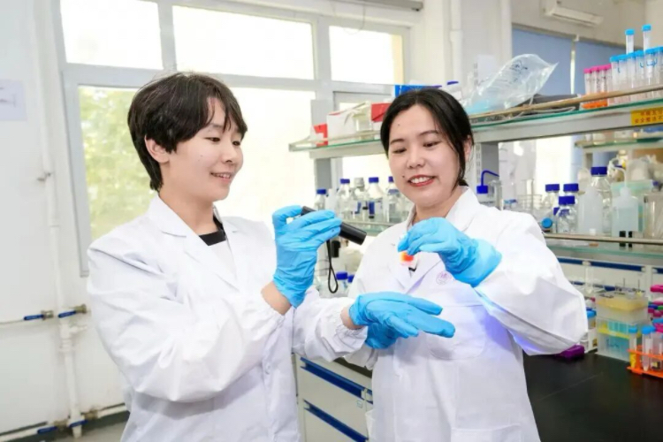 南开大学材料科学与工程学院青年教师曾乐与化学学院青年教师蔡佳蓉(左一)。图片来源:南开大学