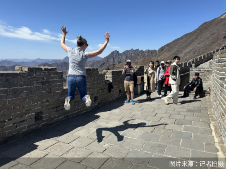 9月中旬,来自法国的游客Sophie选择在北京中转,停留1日后前往广州观看音乐演出。在北京游玩的这一天,Sophie前往慕田峪长城打卡,拍下自己乘坐缆车、爬长城的视频,发表在中国的社交媒体平台。她说到,自己最希望游览的北京景点是慕田峪长城和故宫博物院。