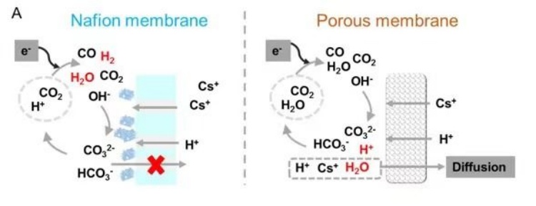 “这项成果为酸性膜电极二氧化碳还原电解槽提供了新的膜使用及设计策略,为未来实现高附加值碳基燃料与化学品的电合成奠定了基础。”罗景山说。