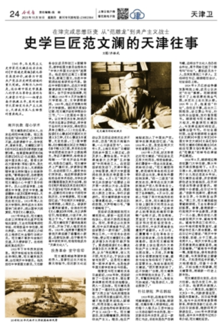 1941年,马克思主义史学家范文澜在延安出版的《中国通史简编》获毛泽东高度评价,被誉为中国共产党在历史研究领域的重大突破。而鲜为人知的是,这位新中国史学奠基人的学术与革命生涯均与天津密不可分——他曾在南开执教五年,其间由国学大家转变为共产主义战士,天津成为其人生转型的重要起点。