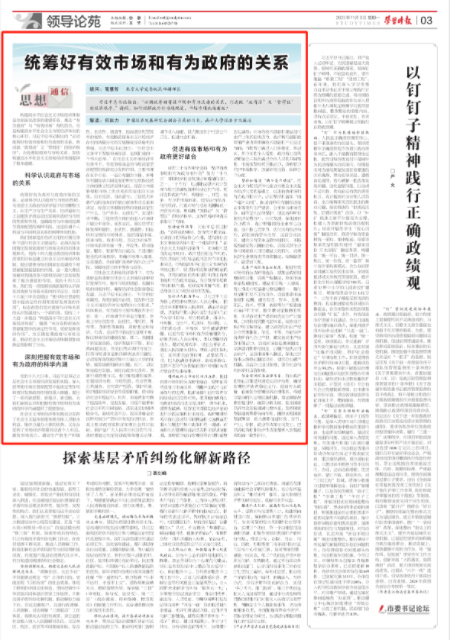 构建高水平社会主义市场经济体制是全面深化改革的重要任务,推动“有为政府”与“有效市场”有机结合,则是构建高水平社会主义市场经济体制的核心环节。习近平总书记指出的“必须统筹好有效市场和有为政府的关系,形成既‘放得活’又‘管得住’的经济秩序”,为处理好政府与市场关系,加快构建高水平社会主义市场经济体制提供了根本遵循。